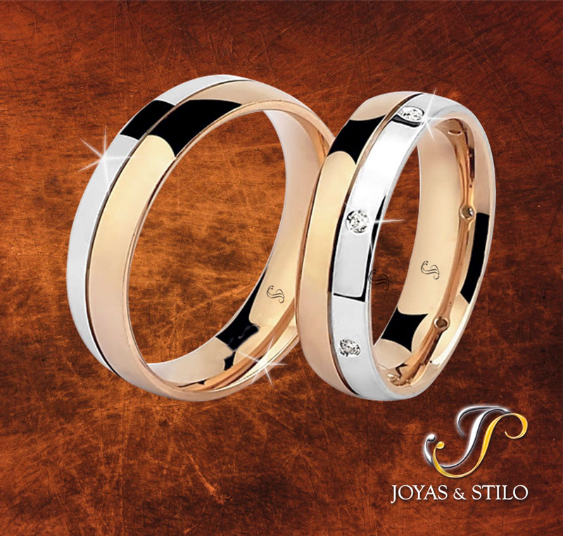 En JOYAS y STILO fabricamos anillos de compromiso y aros de matrimonio, elaborados a mano, con la mayor perfección, detalle a detalle, con los mejores materiales. Ofrecemos en oro amarillo, blanco, rosa o bicolor, combinados a tu elección.