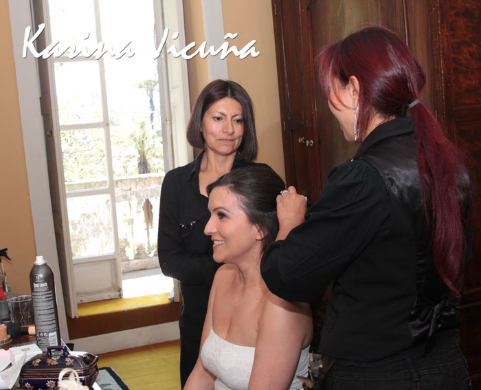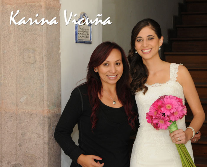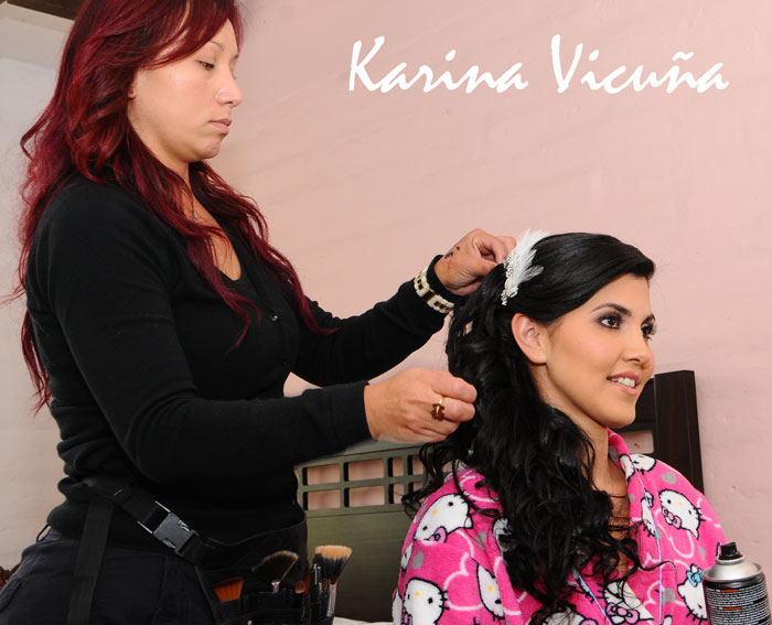 El Maquillaje y peinado de novias es creación y arte conjugados, en las manos de la experta maquilladora Karina Vicuña, ofrece sus servicios a domicilio, no sólo a las novias sino también a sus familiares; además de servicio de retoque de maquillaje y peinado a los invitados, durante la recepción de la boda.