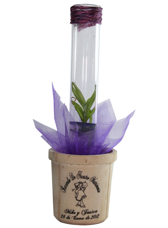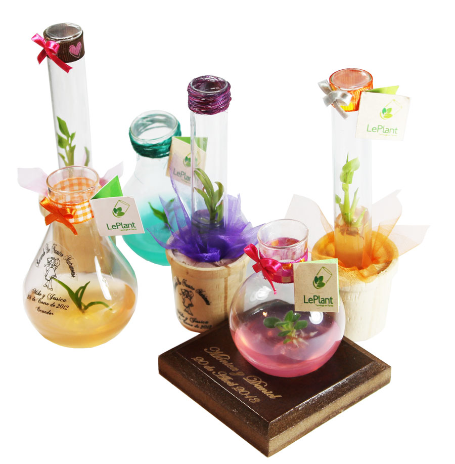 Recuerdos personalizados, tus LePlants podrán llevar minirosas, heliconias, orquideas o violetas decorados del color que hayas eligido para tu boda.